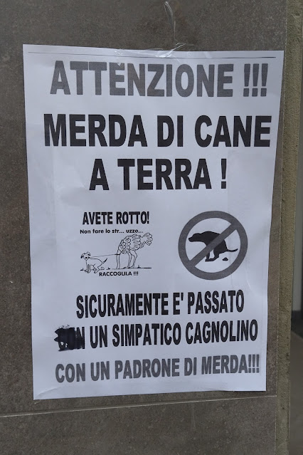 Non molto tempo fa, durante una altrimenti banalissima passeggiata in città, ho avvistato, affisso su un'area di marciapiede adiacente all'ingresso di un condominio, un cartello decisamente particolare, per non dire speciale e degno di ammirazione... come al solito artigianalmente composto, e stampato su di un foglio A4 attaccato con lo scotch, ma concernente un tema per l'appunto non banale: la cacca dei cani. Il messaggio è semplicemente buonissimo: avverte innanzitutto, a caratteri più grandi e in cima al foglio, del fatto che a terra, lì nelle dirette vicinanze del cartello, potrebbe esserci merda di cane... che, evidentemente, a questo punto devo supporre venga lasciata e dunque trovata frequentemente, per portare qualcuno ad affiggere un foglio simile... e ciò è ottimo; utile alla comunità, almeno sperando di intravedere il cartello, e quindi entrare in allerta in tempo, prima di colpire per sbaglio qualche deiezione... Tuttavia, la comunicazione non si ferma qui, e fa poi quindi una cosa che di per sé in realtà contiene tutto il valore dell'operazione: mette in campo una teoria coraggiosa, e cioè che la merda sopracitata, qualora presente, si trovi lì perché, nel posto, sarà passato ovviamente un cane ma, in particolare, accompagnato da un padrone di merda... e beh, non è un'idea troppo improbabile, direi. Le due vignette poi, soprattutto la prima (di origine a questo punto altrettanto ignota quanto l'intero cartello), con questo magico umorismo da boomer — "AVETE ROTTO! Non fare lo str... uzzo... RACCOGLILA!", con un cagnolino che sta lì a defecare, mentre col guinzaglio è legato ad uno struzzo che ha la testa nel pavimento — danno il colpo finale. ...Ora, in realtà, come spesso avviene per questi cosi ottimi in spirito, il lavoro non è perfetto nell'esecuzione, e questo per me è sempre un po' un peccato; è possibile che bisogna sempre perdersi nei più minimi dettagli? Posso anche sorvolare sulla E accentata maiuscola resa con l'apostrofo anziché con il corretto carattere (`È`; fatevi il piacere e copiatela da qui quando vi serve, se proprio non sapete come inserirla altrimenti), svista tanto da principianti quanto purtroppo ancora diffusa... ma perché mai i punti esclamativi messi a due parti spaziati dalla parola precedente (tecnicamente scorretto), e ad un'altra no? Per altro, è strano che il responsabile sia stato così tirchio da non stamparlo neppure a colori, seppur il poster sia stato evidentemente composto a colori; non solo per le due immaginette inserite al centro, e in particolare quella col simbolo di divieto sulla silhouette di un cane cacante, che dovrebbe essere rosso... ma anche per il testo che, essendo a tratti più chiaro e più scuro, a meno che non sia stato fatto proprio nero e grigio, devo supporre sia stato formattato in nero + un altro colore ignoto, e così ovviamente non rende. Poi, c'è un errore di scrittura veramente da scuole elementari, ossia la parola "con" ripetuta due volte... e quella in eccesso è stata poi cancellata, sì, ma a mano, a foglio già stampato... e spero la correzione sia stata fatta dallo stesso creatore, anche se così si riconfermerebbe così decisamente tirchio, e non da una terza persona, perché a quel punto il creatore sarebbe anche molto ignorante, e mi dispiacerebbe... Vabbè, io ovviamente critico, perché devo sempre criticare e lamentarmi; è nella mia natura, e ormai esisto praticamente solo per questo... ma più che altro perché, in fondo, se vedo il valore in qualcosa, mi sorge anche il desiderio che questa sia magari portata al suo punto di espressione pratica più perfetto, e mi dispiace quando la realtà non è così... Ma, chiaramente, allo stesso tempo, è infinitamente meglio avere cose di valore ma imperfette, ed eroi che le realizzano e fanno la loro parte per salvare questo mondo sempre più cupo, piuttosto che niente... quindi, grazie, chiunque tu sia. 💩