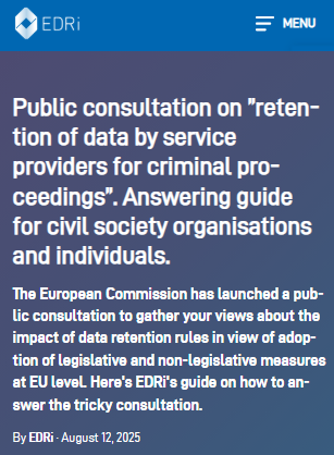 Partecipate alla Consultazione pubblica sulla “conservazione dei dati da parte dei fornitori di servizi per procedimenti penali”, ma prima leggete la guida di EDRi: questa proposta può legalizzare la sorveglianza di massa e minacciare la nostra privacy e i nostri diritti fondamentali!