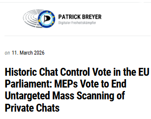 In una svolta sensazionale nella lotta contro il Chat Control, la maggioranza del Parlamento europeo ha votato oggi per porre fine alla scansione di massa non mirata delle comunicazioni private. Così facendo, il Parlamento ha fermamente respinto le pratiche di sorveglianza incostituzionali e soggette a errori degli ultimi anni. Ora aumenta la pressione sui governi dell'UE affinché rispettino il voto dei deputati e pongano fine una volta per tutte alla sorveglianza di massa non mirata in Europa.