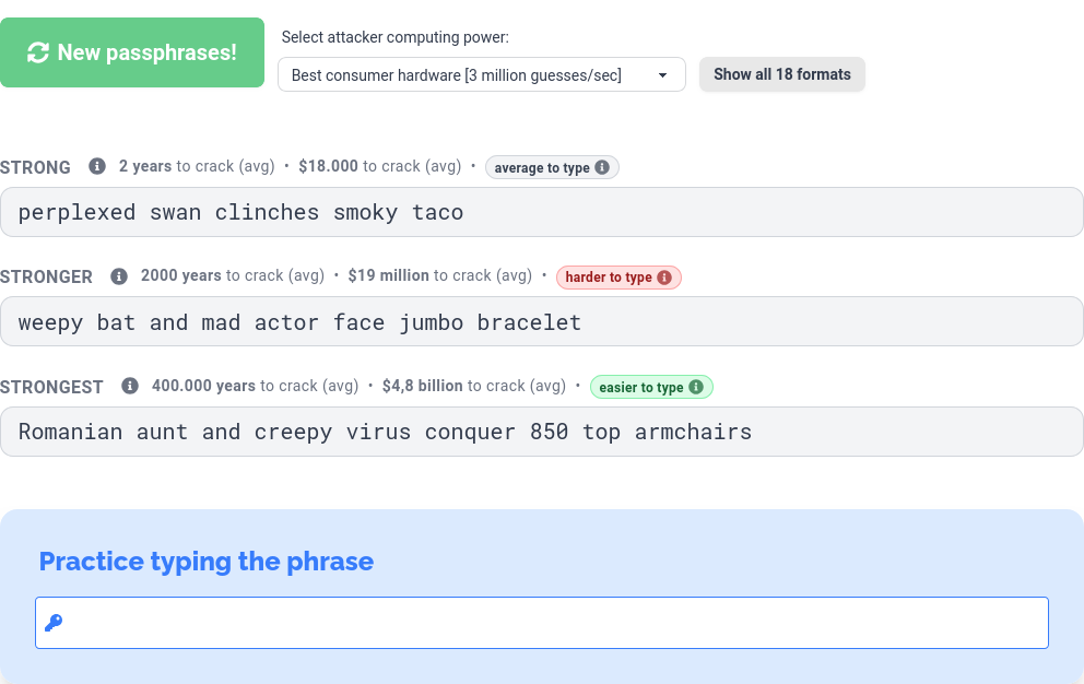 StrongPhrase aggiunge un punteggio per la facilità di battitura per le passphrase